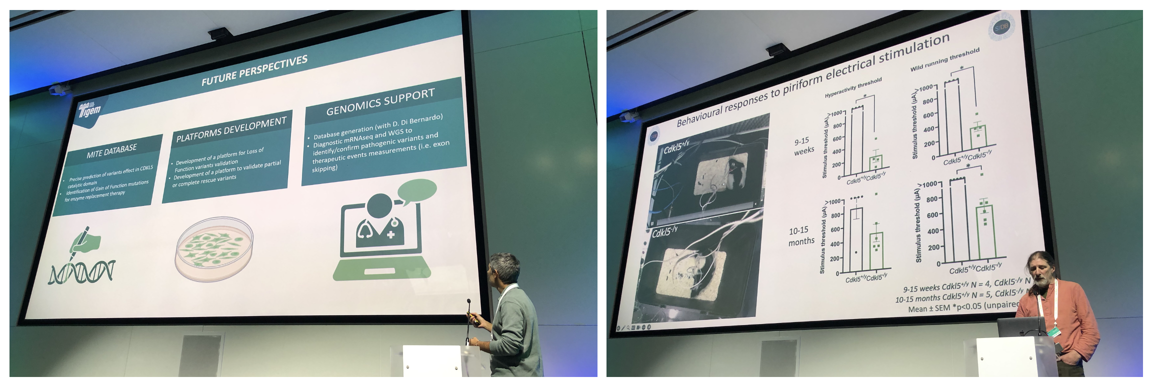 Les tests génétiques ne sont pas toujours faciles à interpréter. Par exemple, si votre enfant a une mutation dans le gène CDKL5 qui casse le gène, alors il est facile à interpréter dans un test génétique. Mais que se passe-t-il lorsque la mutation change une lettre par une autre ? C’est difficile, et nous nous retrouvons avec des VUS (variantes de signification inconnue) et un diagnostic incertain. Une équipe de l’Institut de génétique et de médecine de Téléthon (TIGEM) fabrique en laboratoire toutes les modifications possibles de lettres dans le CDKL5 et vérifiera toutes leurs fonctions dans les cellules, puis mettra les résultats dans une base de données. De cette manière, les laboratoires génétiques auront toujours une réponse pour toute modification de lettre qu’ils trouvent. Plus de VUS pour le CDKL5, quel projet génial.