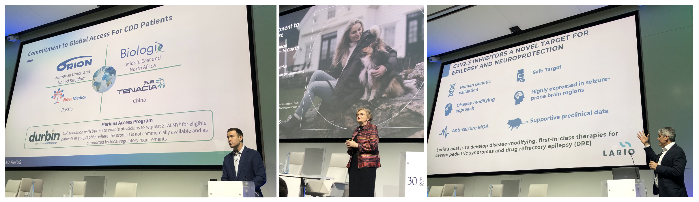 Pour vous montrer à quel point c’est spécial et difficile d’avoir un médicament approuvé pour un syndrome épileptique rare, je vais répéter ici ce que j’ai dit lors de ma présentation lors de la session sur la pipeline de traitement : il existe plus de 300 syndromes épileptiques, et seulement 4 syndromes épileptiques ont un médicament approuvé. Il s’agit du complexe de la sclérose tubéreuse (TSC), du syndrome de Lennox-Gastaut (LGS), du syndrome de Dravet et du CDD. C’est tout, seulement 4.