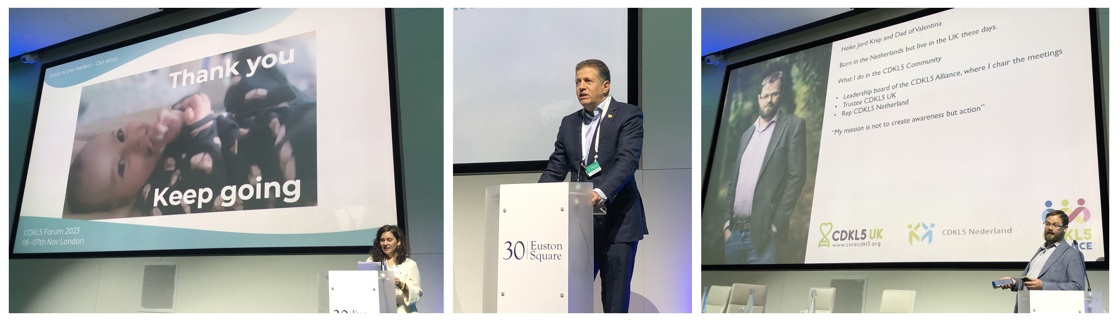 Le Forum s’ouvre et se termine toujours par les mots de la communauté des patients. Cette année, Cristina, de CDKL5 Espagne, a ouvert la conférence avec des mots puissants. Elle a expliqué que lorsqu’ils ont reçu le diagnostic de leur fille, ils ont également appris que leur fille « vivrait une vie entre l’incertain et l’horrible ».
